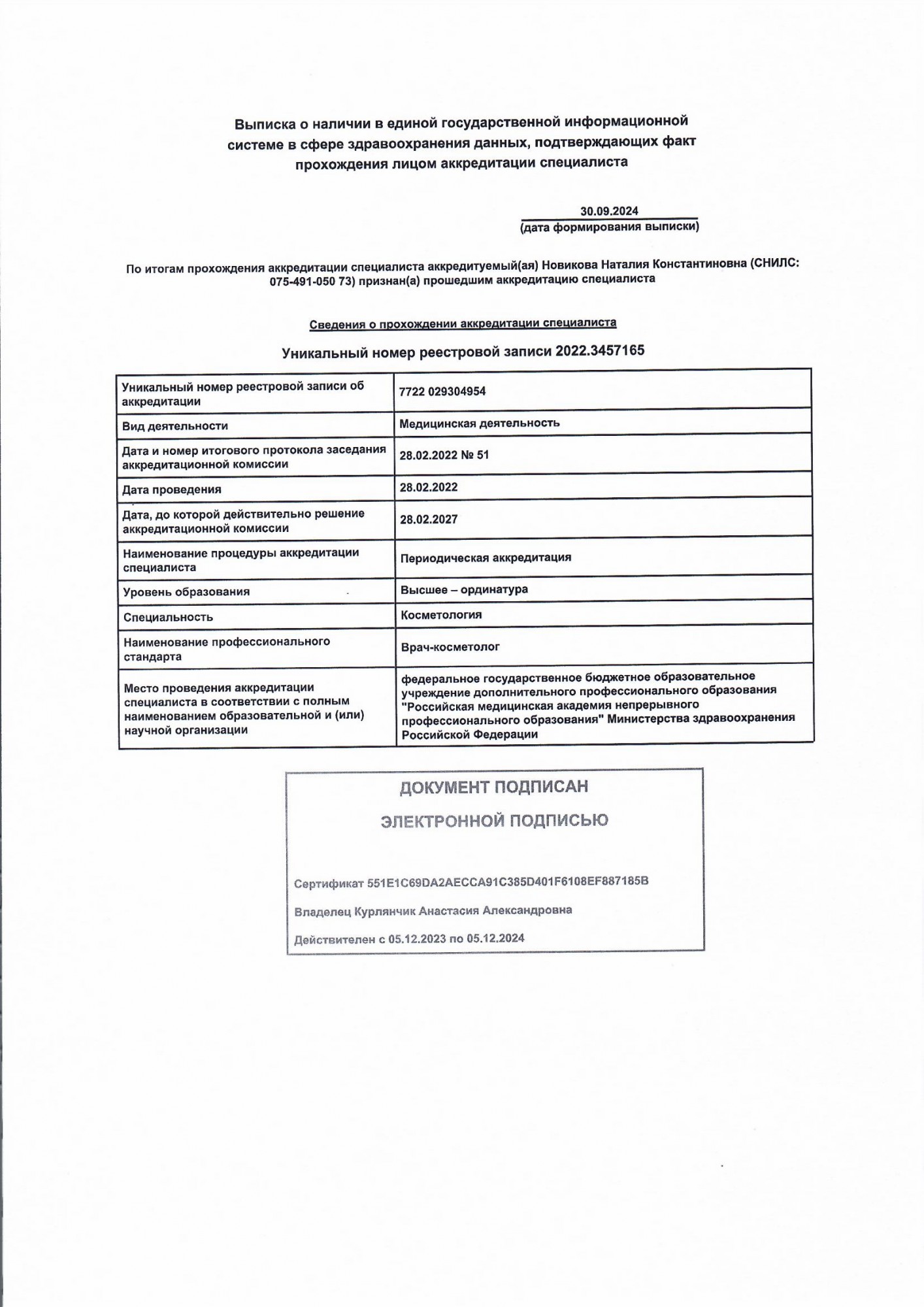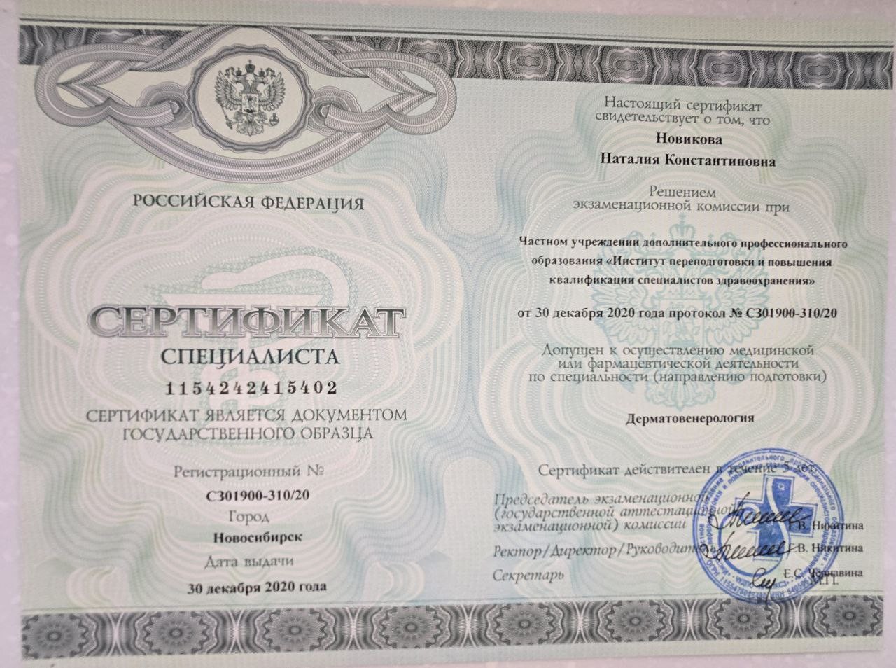 | 2011 | Повышение квалификации по дерматовенерологии. |